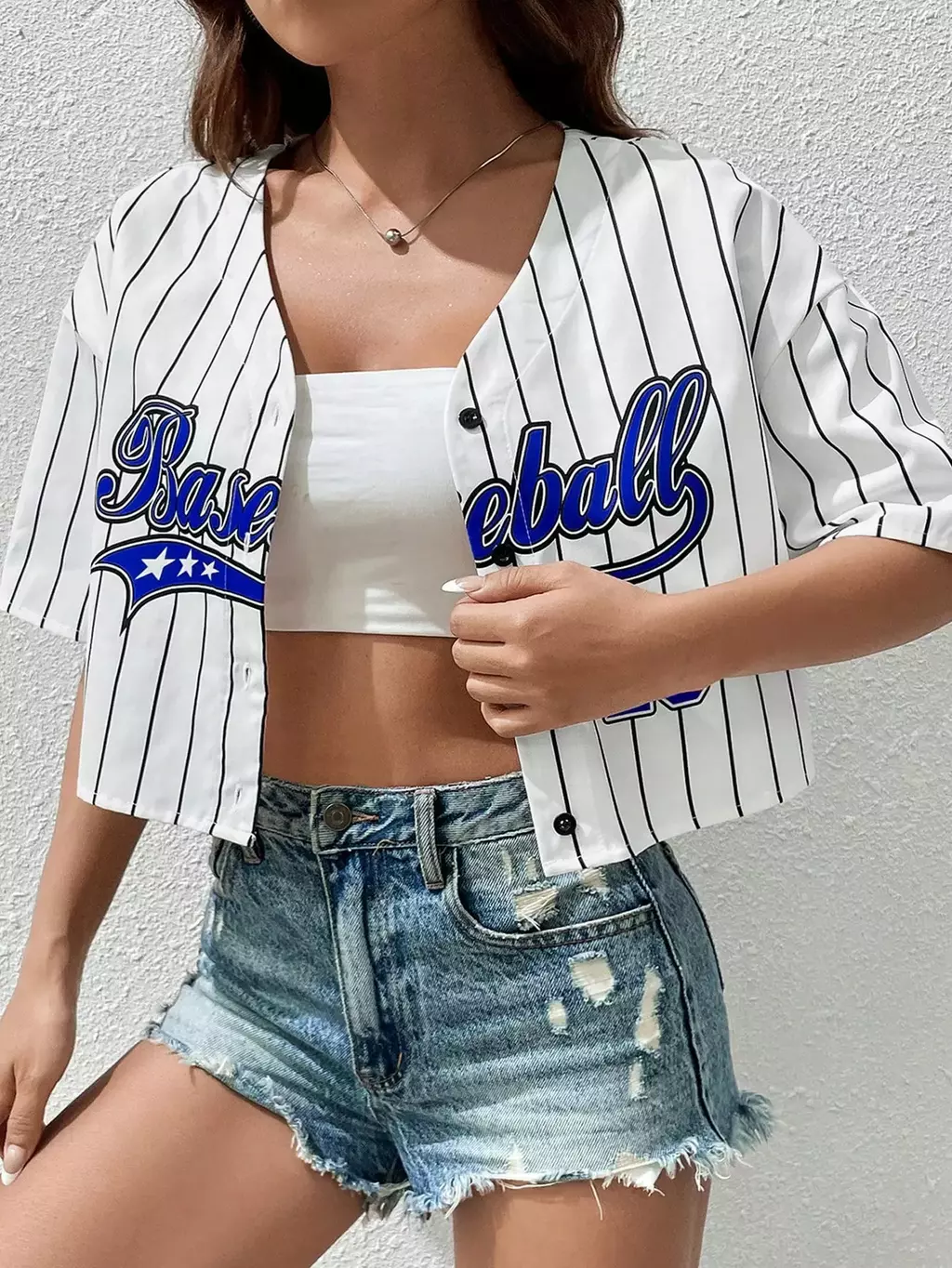 A camisa cropped branca é a escolha ideal para quem busca um visual casual e elegante. Com estampa de letras e listras, traz um toque moderno para qualquer ocasião, perfeita para o Dia dos Namorados e também para o dia a dia.